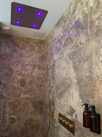 Enfin, vous disposerez d’une grande douche à l’italienne dotée d’une colonne sensorielle avec plusieurs fonctionnalités, d’une grande paroi laissant profiter d’une vue d'ensemble sur la suite. Une vasque en pierre naturelle et miroir tactile avec variateur de lumière viennent compléter l’espace bien-être.